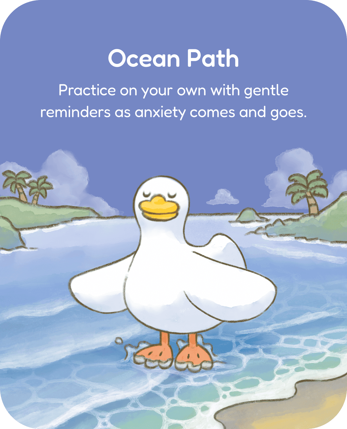 Learn about your anxiety and build calming skills that work for you through short daily practices in your routine. You’ll unlock exclusive rewards along the way and open a calming beach in your Park at the end.